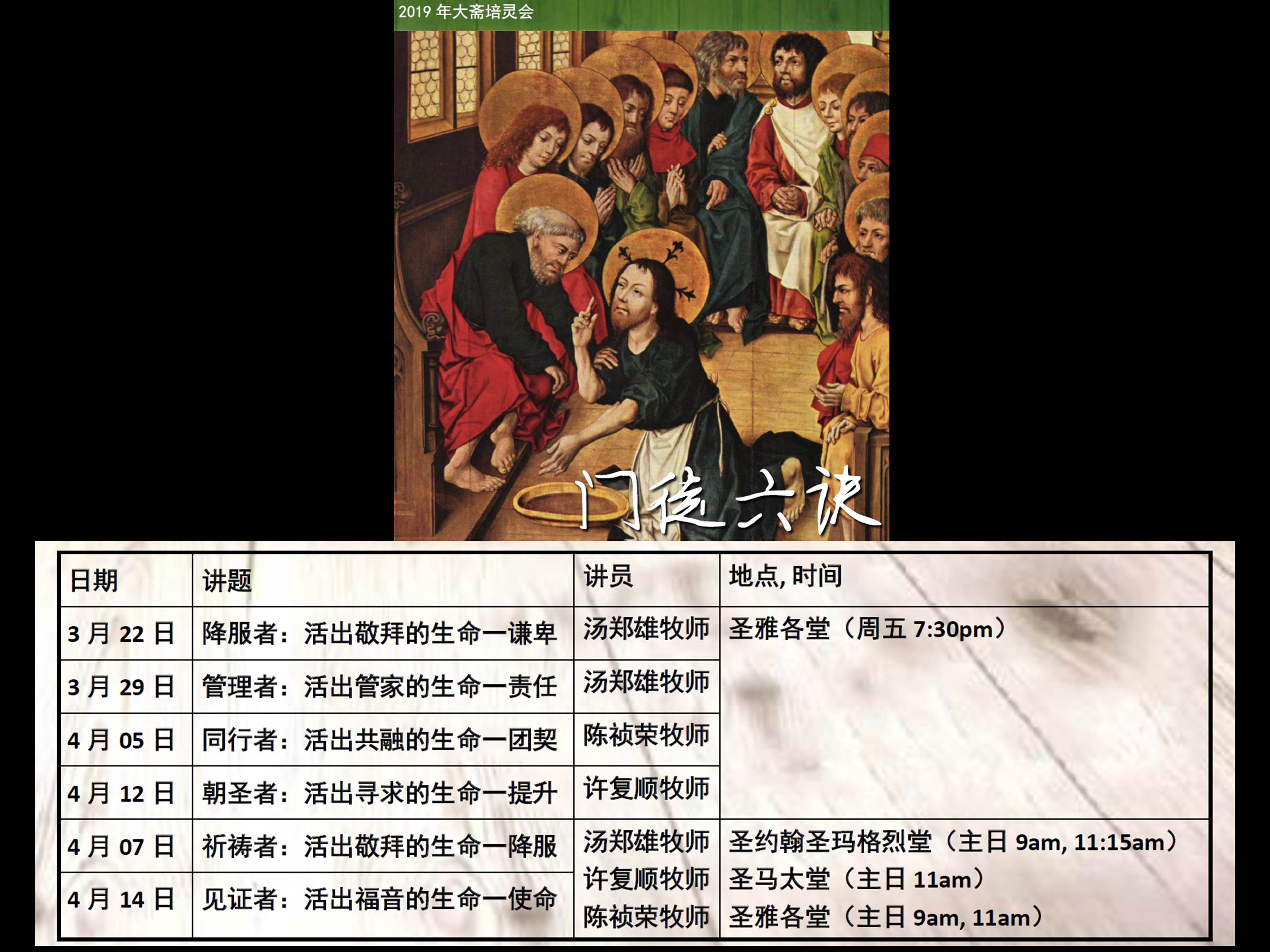 April 16, 2019April 16, 2019 sjsmcweb 大斋培灵会录音 Lent Meetings mp3 录音下载3月22日(汤郑雄牧师)降服者:活出敬拜的生命-谦卑mp3 pdf3月29日(汤郑雄牧师)管理者:活出管家的生命-责任 mp3 pdf 4月5日(陈祯荣牧师)同行者:活出共融的生命-团契4月12日(许复顺牧师)朝圣者:活出寻求的生命-提升 Like Loading...