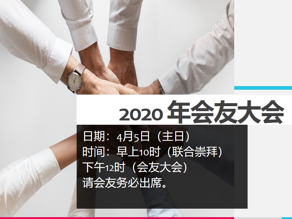 当天至少需66位出席会友大会,请会友们务必参加。敬请注意: