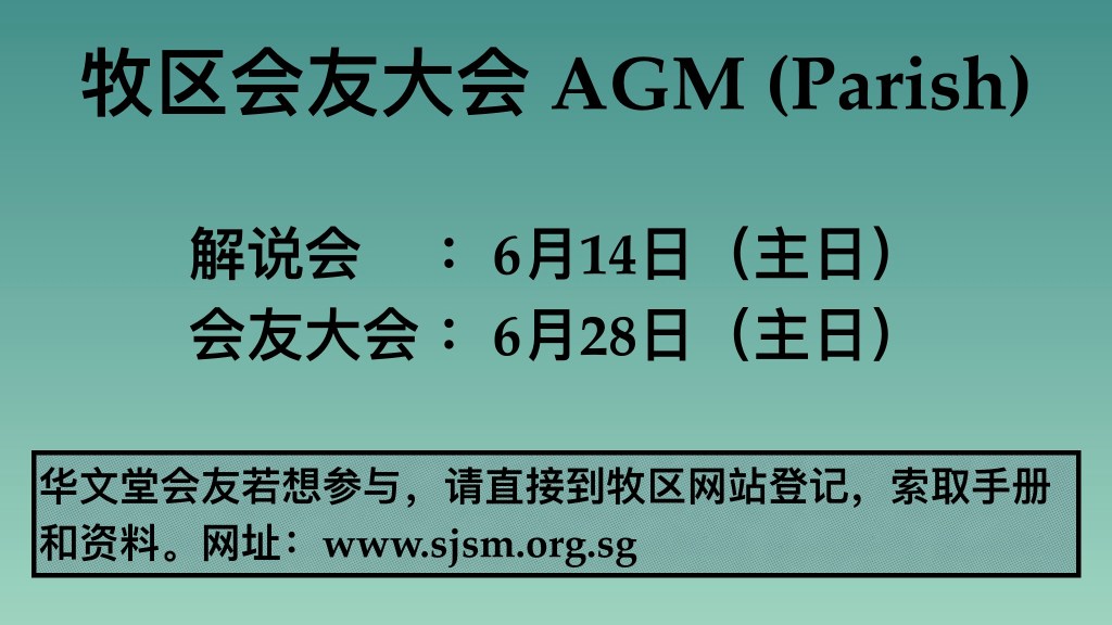 June 8, 2020 sjsmcweb 牧区会友大会 Parish AGM(6月14日,28日) Share this: Share on X (Opens in new window) X Share on Facebook (Opens in new window) Facebook Like Loading...