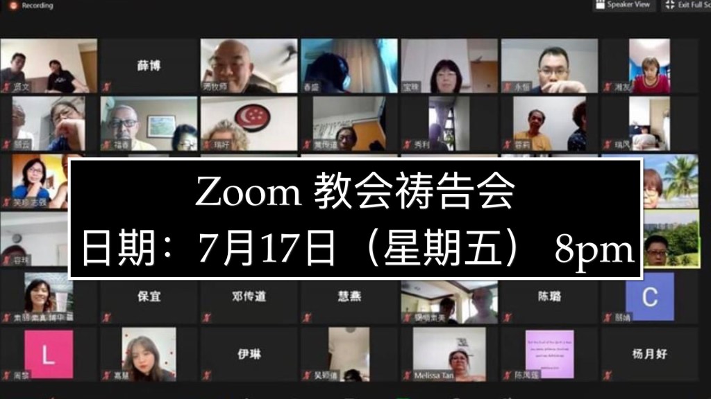 日期:7月17日(星期五),晚上8时,鼓励弟兄姐妹参与在线上祷告会。