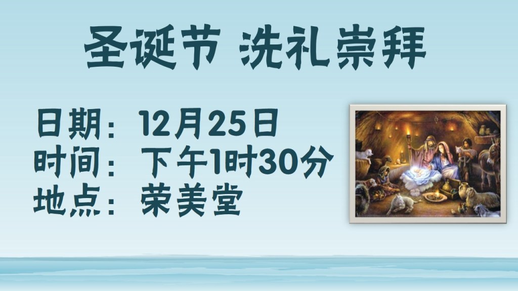 December 18, 2020December 18, 2020 sjsmcweb 圣诞节洗礼崇拜(12月25日) 日期:12月25日(主日)时间:下午1时30分 注:崇拜登记从12月21日(星期一)早上9时至12月24日(星期四) 晚上10时。 Share this: Share on X (Opens in new window) X Share on Facebook (Opens in new window) Facebook Like Loading...