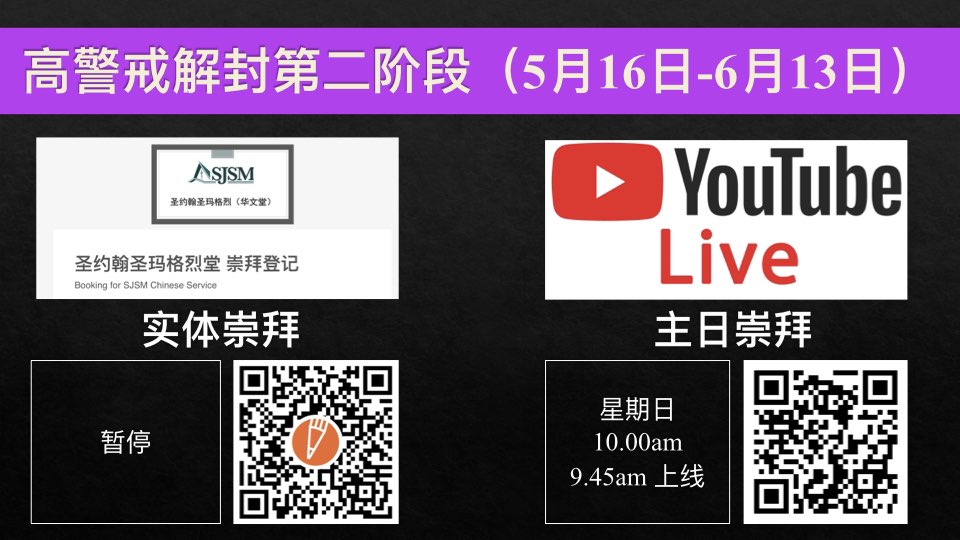 May 15, 2021June 14, 2021 sjsmcweb 高警戒解封第二阶段(5月16日至6月13日) 政府宣布收紧措施是从5月16日至6月13日。在这段时期: 1)崇拜(实体) 暂停 2)主日崇拜(线上) 时间:10.00am (9.45am上线) 请用以下网址观看和参与: http://youtube.com/c/sjsmchinese/live Share this: Share on X (Opens in new window) X Share on Facebook (Opens in new window) Facebook Like Loading...