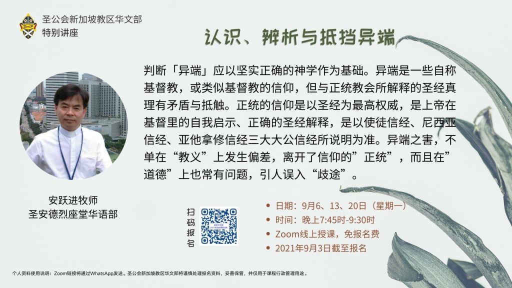 主题:认识、辨析与抵挡异端主讲:安跃进牧师