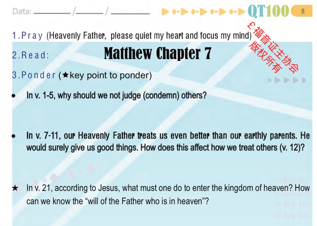 January 16, 2022January 14, 2022 sjsmcweb 读经计划 – 1月16日 经文:马太福音 7章 微读圣经 有声圣经 Scripture : Matthew 7 YouVersion ESV Dramatised Audio Share this: Share on X (Opens in new window) X Share on Facebook (Opens in new window) Facebook Like Loading...