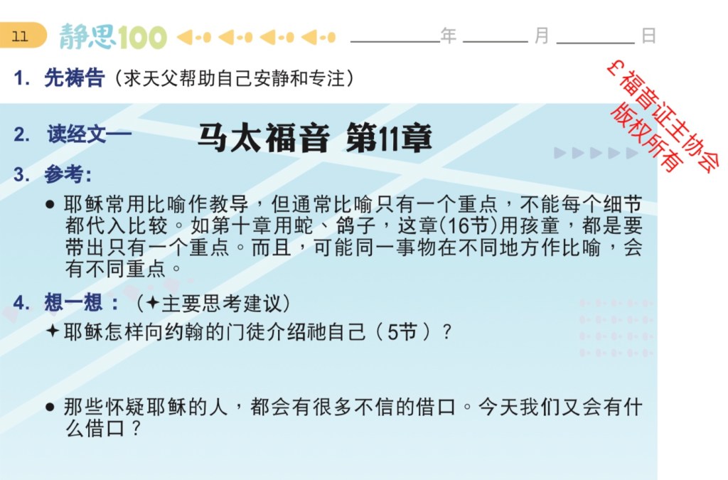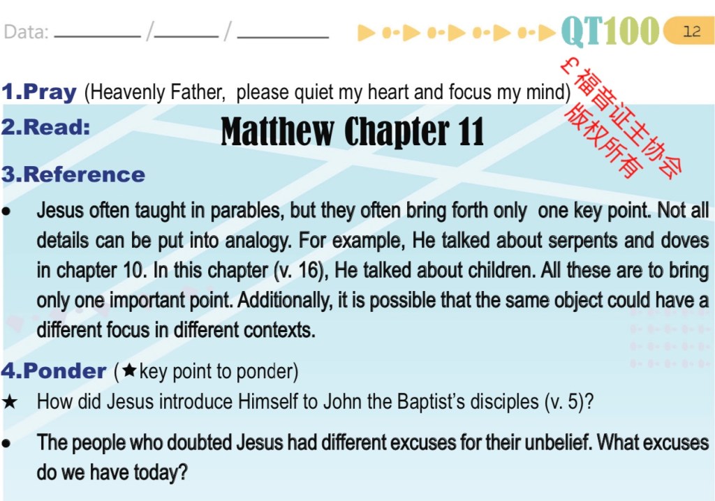 January 20, 2022 sjsmcweb 读经计划 – 1月20日 经文:马太福音 11章 微读圣经 有声圣经 Scripture : Matthew 11 YouVersion ESV Dramatised Audio Share this: Share on X (Opens in new window) X Share on Facebook (Opens in new window) Facebook Like Loading...