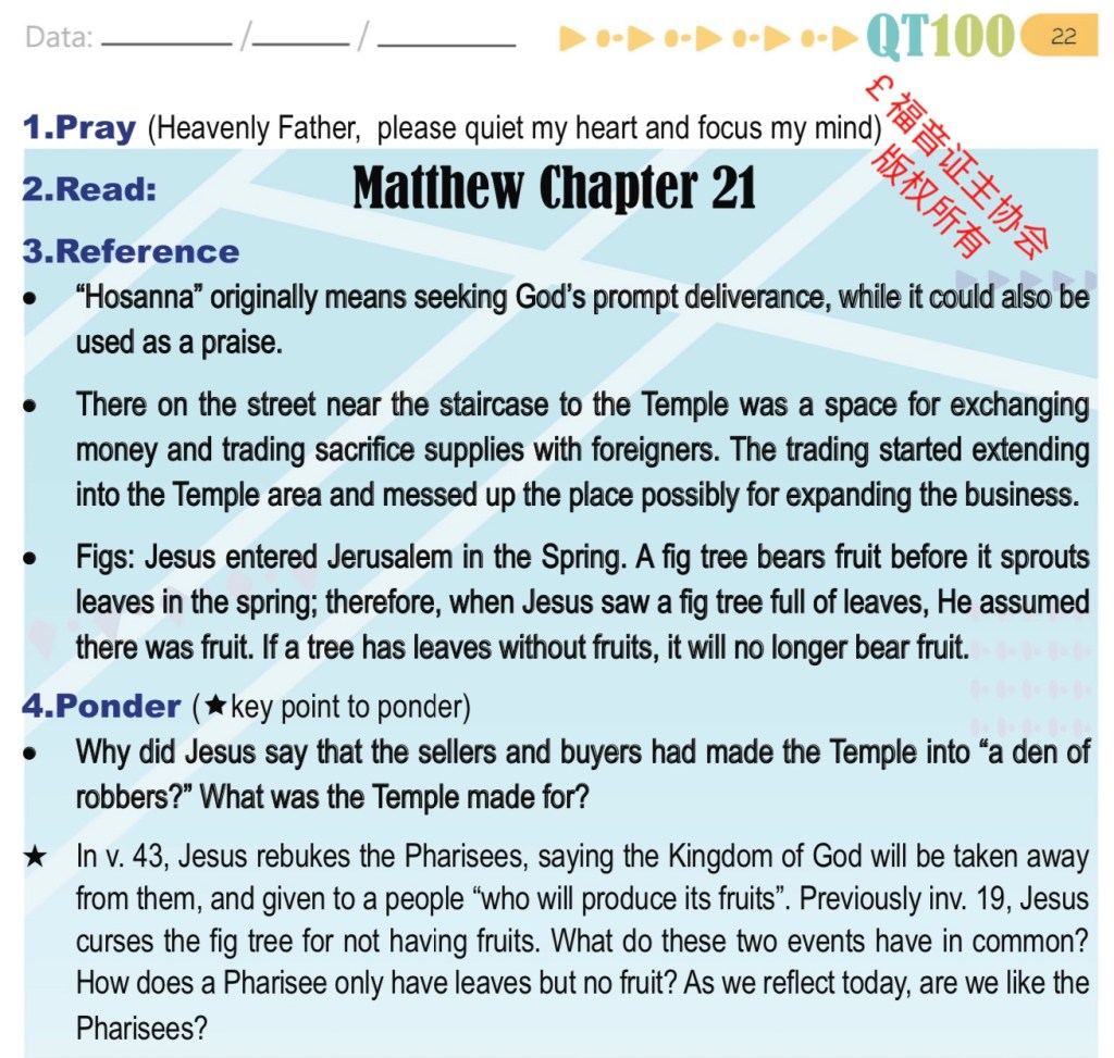 February 5, 2022 sjsmcweb 读经计划 – 2月5日 经文:马太福音 21章 微读圣经 有声圣经 Scripture : Matthew 21 YouVersion ESV Dramatised Audio Share this: Share on X (Opens in new window) X Share on Facebook (Opens in new window) Facebook Like Loading...