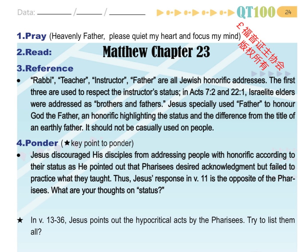 February 7, 2022 sjsmcweb 读经计划 – 2月7日 经文:马太福音 23章 微读圣经 有声圣经 Scripture : Matthew 23 YouVersion ESV Dramatised Audio Share this: Share on X (Opens in new window) X Share on Facebook (Opens in new window) Facebook Like Loading...