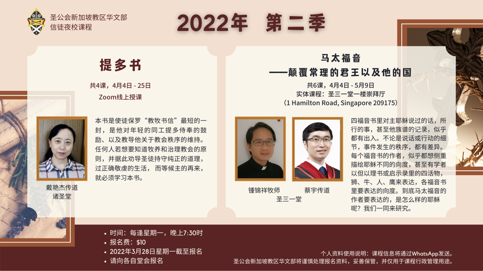 形式:圣三一堂(共6课4月4日-5月9日)