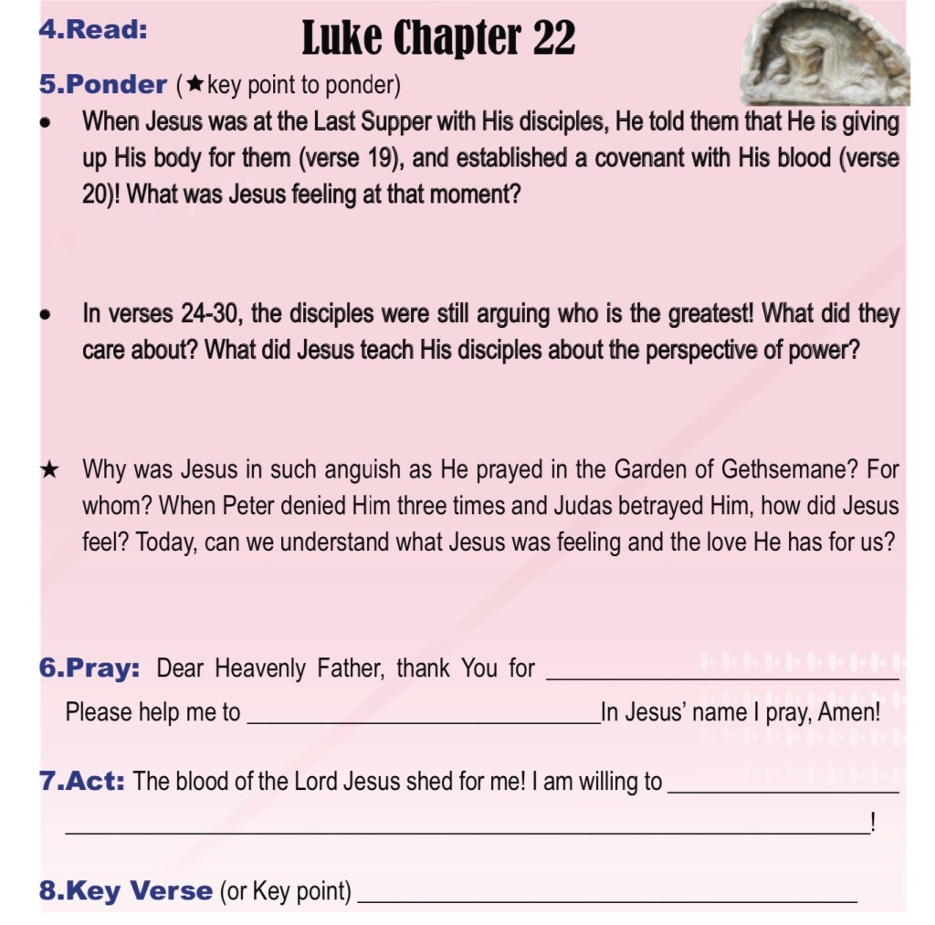 March 31, 2022March 26, 2022 sjsmcweb 读经计划 3月31日:路22 经文:路加福音 22章 微读圣经 有声圣经 Scripture : Luke 22 YouVersion ESV Dramatised Audio Share this: Share on X (Opens in new window) X Share on Facebook (Opens in new window) Facebook Like Loading...