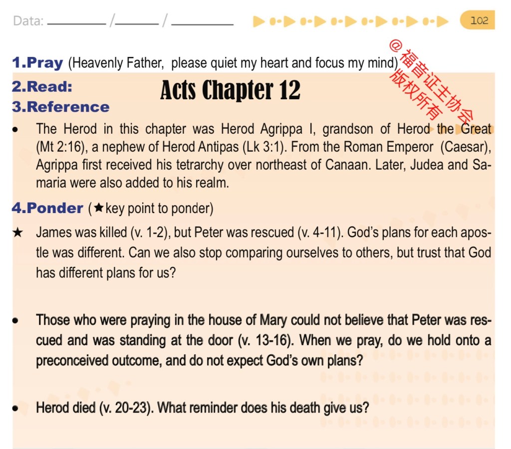 May 14, 2022May 7, 2022 sjsmcweb 读经计划 5月14日:徒 12 经文:使徒行传 12章 微读圣经 有声圣经 Scripture : Acts 12 YouVersion ESV Dramatised Audio Share this: Share on X (Opens in new window) X Share on Facebook (Opens in new window) Facebook Like Loading...