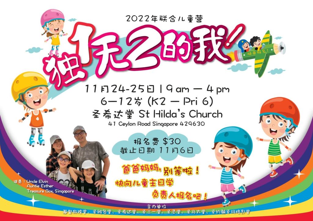 September 13, 2022November 22, 2022 sjsmcweb 联合儿童营(11月24日-25日) 主题:独1无2的我!日期:11月24日-25日(9时-4时)地点:圣希达堂对象:6-12岁儿童报名费:$30 截止日期:11月6日欢迎并鼓励大家向邓苹传道询问详情及报名。 Share this: Share on X (Opens in new window) X Share on Facebook (Opens in new window) Facebook Like Loading...