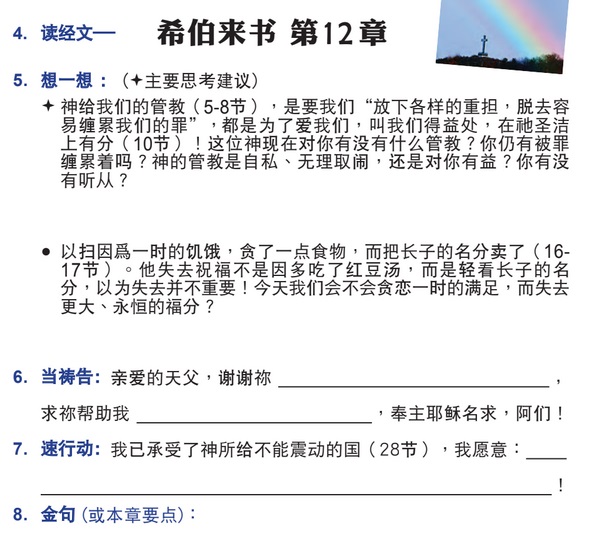 October 14, 2022September 28, 2022 sjsmcweb 读经计划 10月14日(五):来12 经文:希伯来书12 微读圣经 有声圣经 Share this: Share on X (Opens in new window) X Share on Facebook (Opens in new window) Facebook Like Loading...