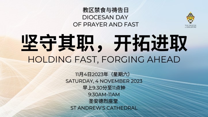 October 31, 2023October 31, 2023 sjsmcweb 教区禁食与祷告日(11月4日,星期六) 主题:坚守其职,开拓进取日期:11月4日(周六)时间:9时30分至11时地点:圣安德烈座堂 Share this: Share on X (Opens in new window) X Share on Facebook (Opens in new window) Facebook Like Loading...