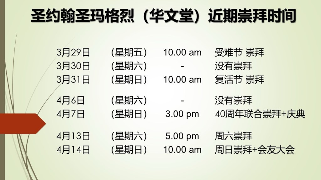 March 26, 2024April 16, 2024 sjsmcweb 近期崇拜时间 Share this: Share on X (Opens in new window) X Share on Facebook (Opens in new window) Facebook Like Loading...