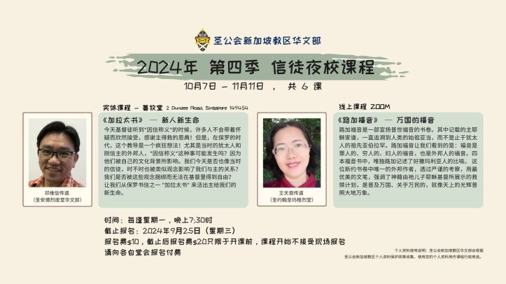 报名费$10; 截止后报名费$20只限在开课前,恕不接受现场报名。