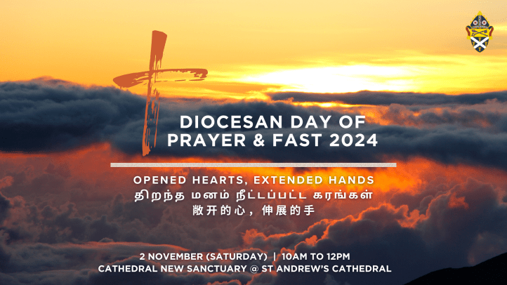 October 24, 2024 sjsmcweb 教区禁食祷告日(11月2日,周六) 教区禁食祷告日《敞开的心,伸展的手》日期:11月2日(周六)时间:早上10时至下午12时地点:圣安德烈座堂(新圣殿) Share this: Share on X (Opens in new window) X Share on Facebook (Opens in new window) Facebook Like Loading...
