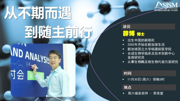 简短介绍:薛博是一名出生中国的新移民,从2005年开始在新加坡生活,目前为新加坡国立大学杨潞龄医学院合成生物学临床及技术创新中心首席研究员,从事生物酶及微生物代谢方面的研究。