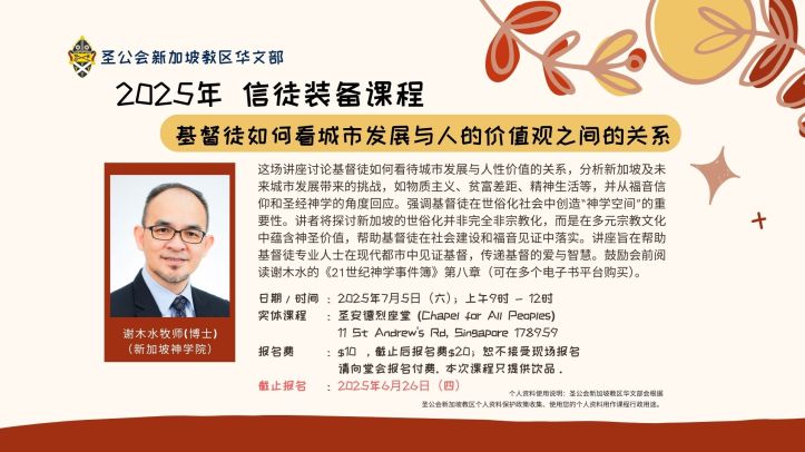讲题: 基督徒如何看城市发展与人的价值观之间的关系
