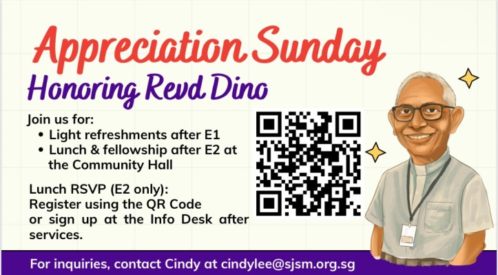 June 10, 2025June 10, 2025 sjsmcweb Dino 牧师欢送会(6月29日,周日) Dino 牧师的欢送会将于6月29日(周日)举行。牧区欢迎华文堂会友一起共餐,时间是中午12时15分。请到服务台登记。 Share this: Share on X (Opens in new window) X Share on Facebook (Opens in new window) Facebook Like Loading...