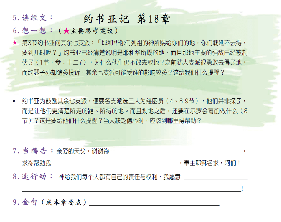 8 划地势的人起身去的时候,约书亚嘱咐他们说:“你们去走遍那地,划明地势,就回到我这里来。我要在示罗这里,耶和华面前,为你们拈阄。” 9 他们就去了,走遍那地,按着城邑分做七份,写在册子上,回到示罗营中见约书亚。 10 约书亚就在示罗,耶和华面前,为他们拈阄。约书亚在那里,按着以色列人的支派,将地分给他们。