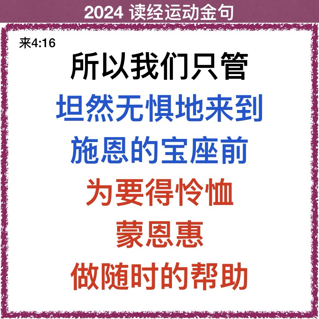 14 我们既然有一位已经升入高天尊荣的大祭司,就是神的儿子耶稣,便当持定所承认的道。 15 因我们的大祭司并非不能体恤我们的软弱,他也曾凡事受过试探,与我们一样,只是他没有犯罪。 16 所以我们只管坦然无惧地来到施恩的宝座前,为要得怜恤,蒙恩惠,做随时的帮助。