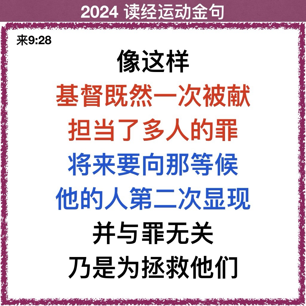 23 照着天上样式做的物件必须用这些祭物去洁净,但那天上的本物自然当用更美的祭物去洁净。 24 因为基督并不是进了人手所造的圣所——这不过是真圣所的影像——乃是进了天堂,如今为我们显在神面前。 25 也不是多次将自己献上,像那大祭司每年带着牛羊的血[c]进入圣所。 26 如果这样,他从创世以来,就必多次受苦了。但如今在这末世显现一次,把自己献为祭,好除掉罪。 27 按着定命,人人都有一死,死后且有审判; 28 像这样,基督既然一次被献,担当了多人的罪,将来要向那等候他的人第二次显现,并与罪无关,乃是为拯救他们。