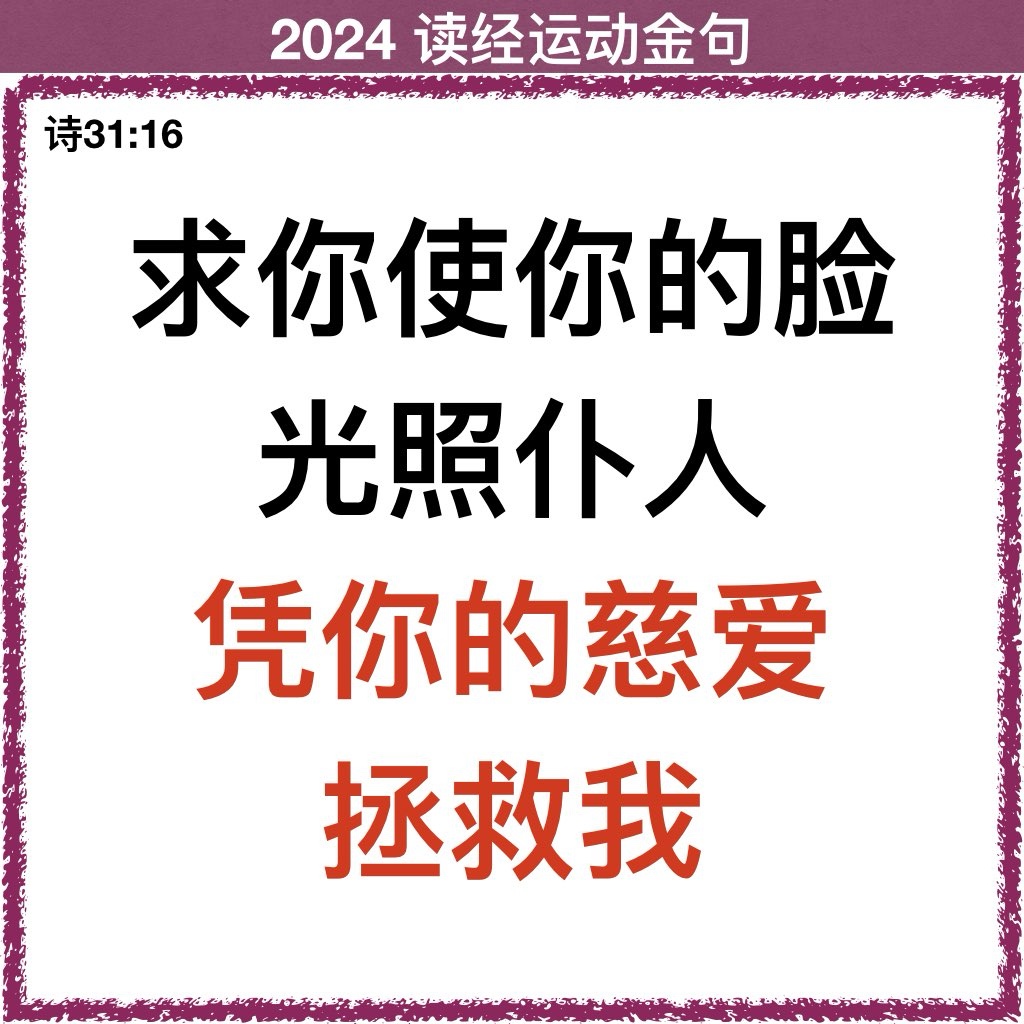 16 求你使你的脸光照仆人,凭你的慈爱拯救我。