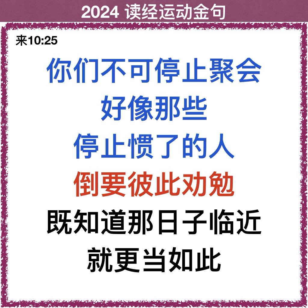 19 弟兄们,我们既因耶稣的血得以坦然进入至圣所, 20 是借着他给我们开了一条又新又活的路,从幔子经过,这幔子就是他的身体; 21 又有一位大祭司治理神的家, 22 并我们心中天良的亏欠已经洒去,身体用清水洗净了,就当存着诚心和充足的信心来到神面前。 23 也要坚守我们所承认的指望,不致摇动,因为那应许我们的是信实的。 24 又要彼此相顾,激发爱心,勉励行善。 25 你们不可停止聚会,好像那些停止惯了的人,倒要彼此劝勉;既知道那日子临近,就更当如此。