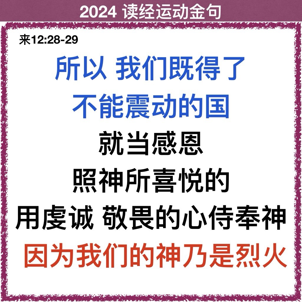 18 你们原不是来到那能摸的山,此山有火焰、密云、黑暗、暴风、 19 角声与说话的声音。那些听见这声音的,都求不要再向他们说话, 20 因为他们当不起所命他们的话说:“靠近这山的,即便是走兽,也要用石头打死。” 21 所见的极其可怕,甚至摩西说:“我甚是恐惧战兢。” 22 你们乃是来到锡安山,永生神的城邑,就是天上的耶路撒冷;那里有千万的天使, 23 有名录在天上诸长子之会所共聚的总会,有审判众人的神和被成全之义人的灵魂, 24 并新约的中保耶稣以及所洒的血。这血所说的比亚伯的血所说的更美。 25 你们总要谨慎,不可弃绝那向你们说话的。因为那些弃绝在地上警戒他们的,尚且不能逃罪,何况我们违背那从天上警戒我们的呢? 26 当时他的声音震动了地,但如今他应许说:“再一次我不单要震动地,还要震动天。” 27 这再一次的话,是指明被震动的,就是受造之物都要挪去,使那不被震动的常存。 28 所以,我们既得了不能震动的国,就当感恩,照神所喜悦的,用虔诚、敬畏的心侍奉神, 29 因为我们的神乃是烈火。