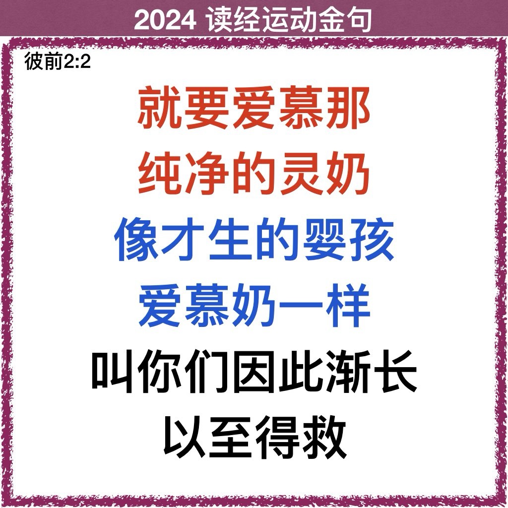 1 所以,你们既除去一切的恶毒、诡诈,并假善、嫉妒和一切毁谤的话, 2 就要爱慕那纯净的灵奶,像才生的婴孩爱慕奶一样,叫你们因此渐长,以至得救。 3 你们若尝过主恩的滋味,就必如此。