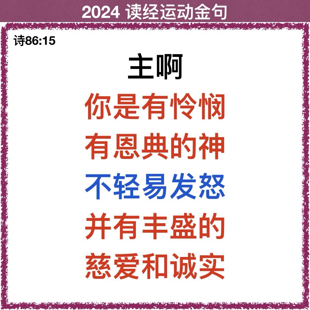 15 主啊,你是有怜悯有恩典的神,不轻易发怒,并有丰盛的慈爱和诚实。